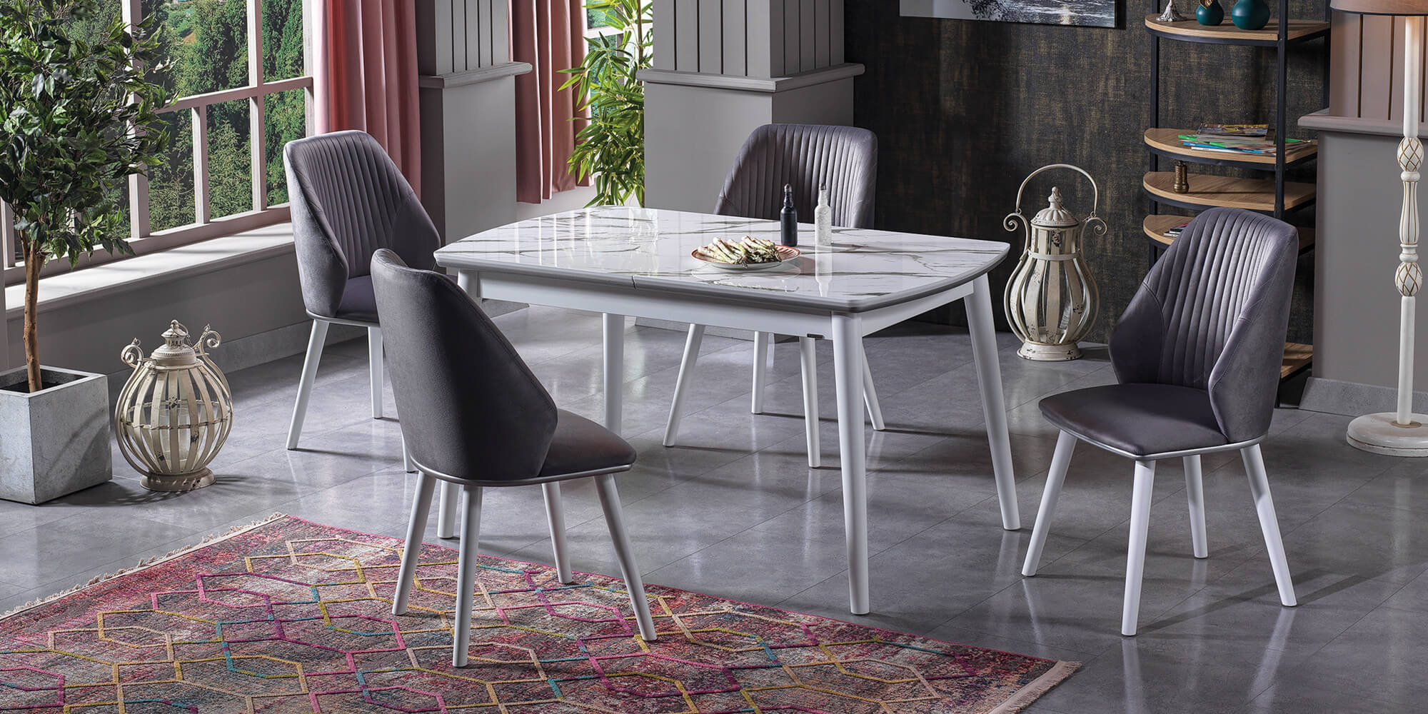 Oscar(Beyaz Lake Siyah Mermer Masa)